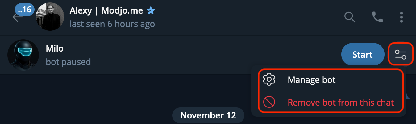 - remove MILO from a specific chat