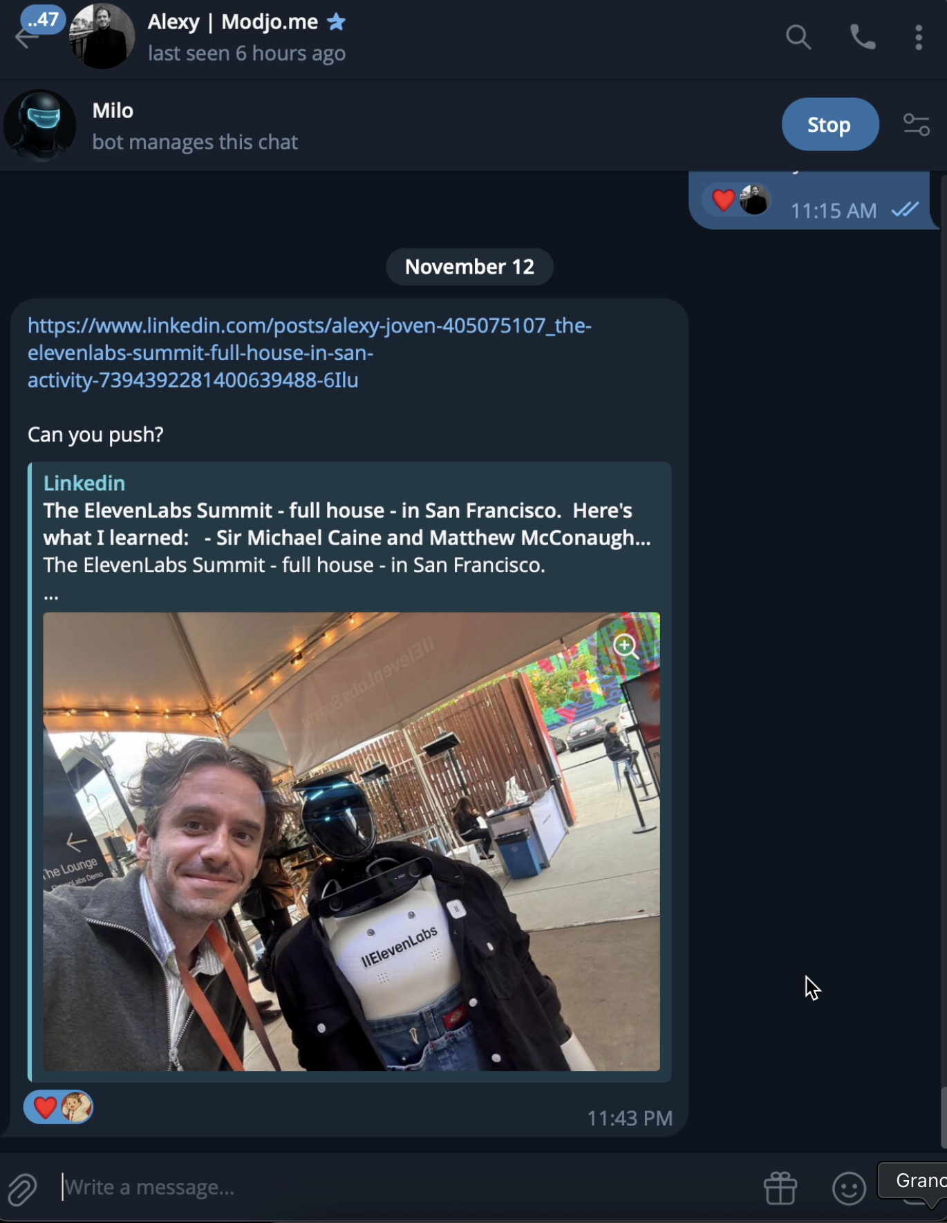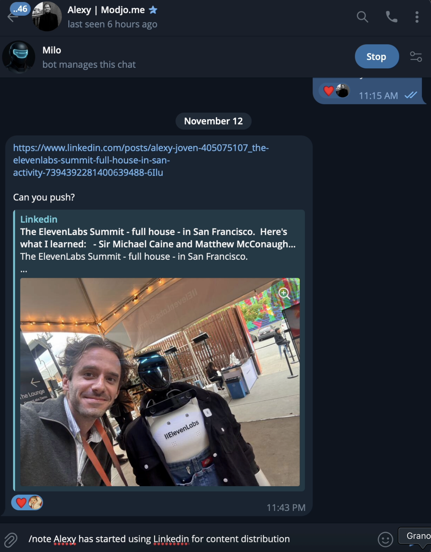 - but another MILO user messages “John”